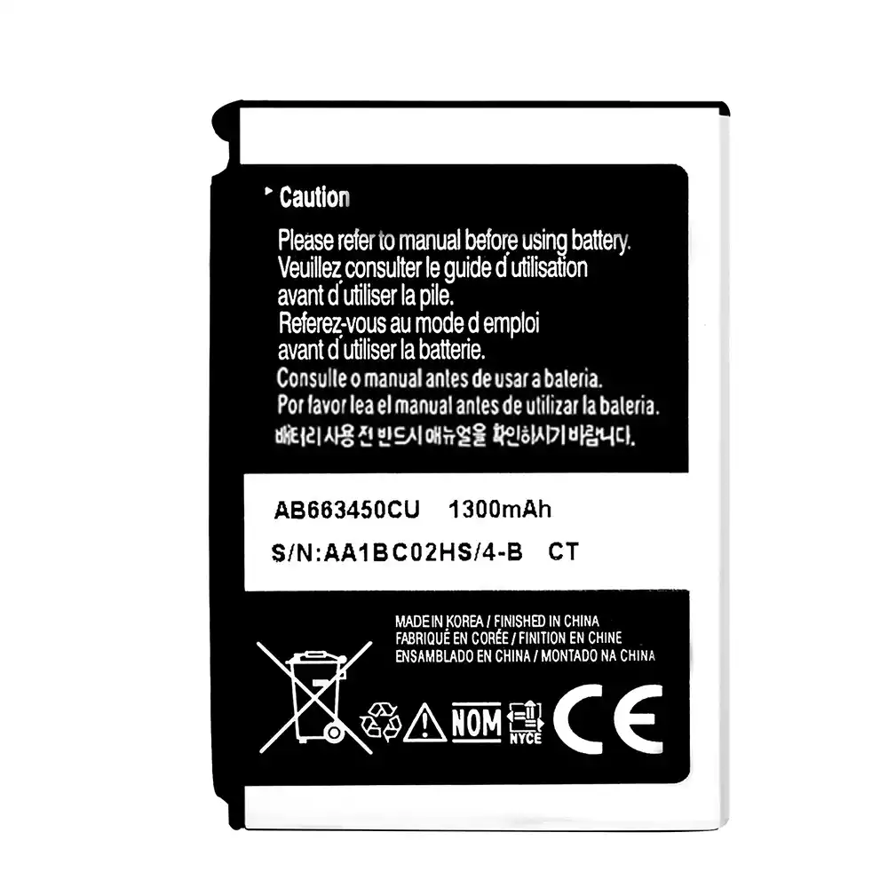 Bateria AB663450CU do Samsung SCH-i780/SCH-i788/FT-C6620/GT-C6625/GT-C6625V C6625 I600 I710