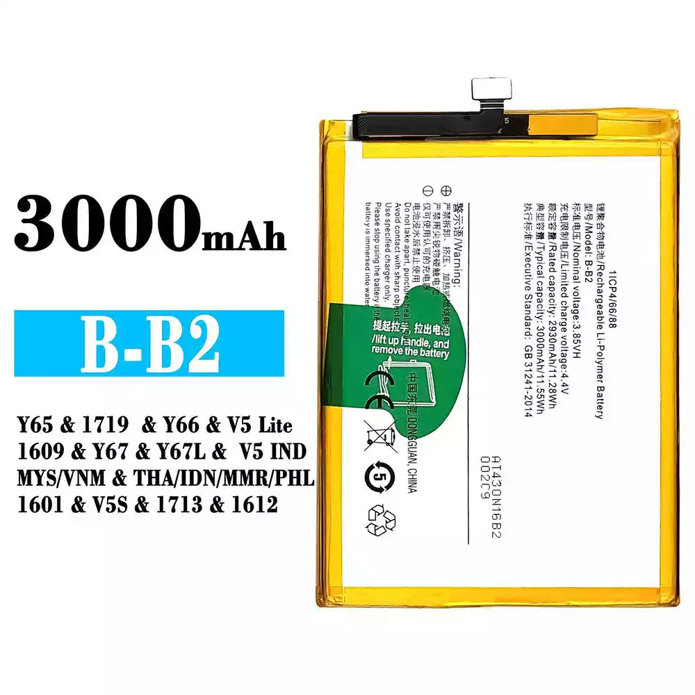 Bateria B-B2 do VIVO Y65 / 1719 / Y66 / V5 Lite / 1609 / Y67 / Y67L / V5 IND MYS VNM / THA IDN MMR PHL 1601 / V5S / 1713 / 1612