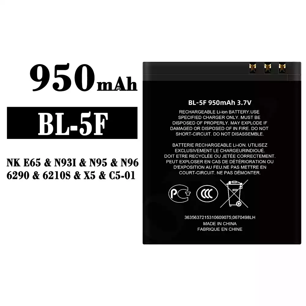Bateria BL-5F do Nokia NK E65 / N93I / N95 / N96 / 6290 / 6210S / X5 / C5-01