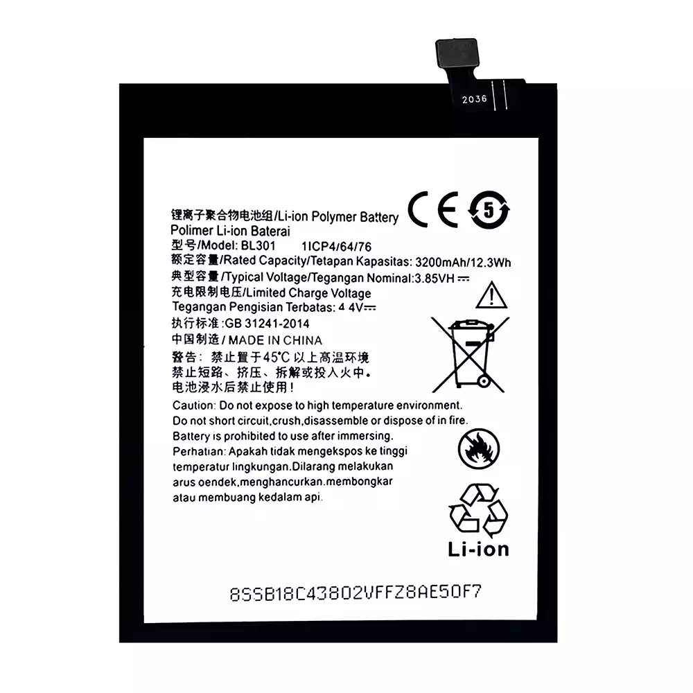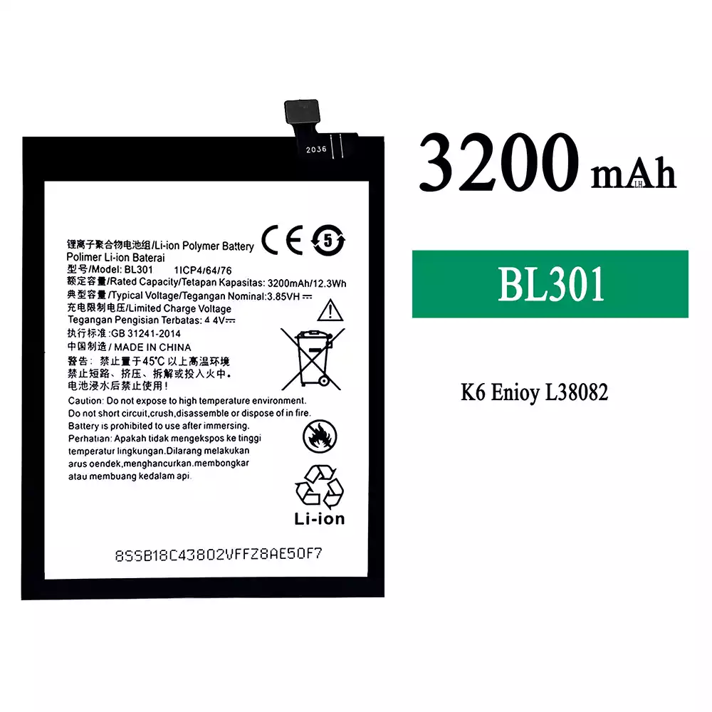 Bateria BL301 do Lenovo K6 Enjoy L38082