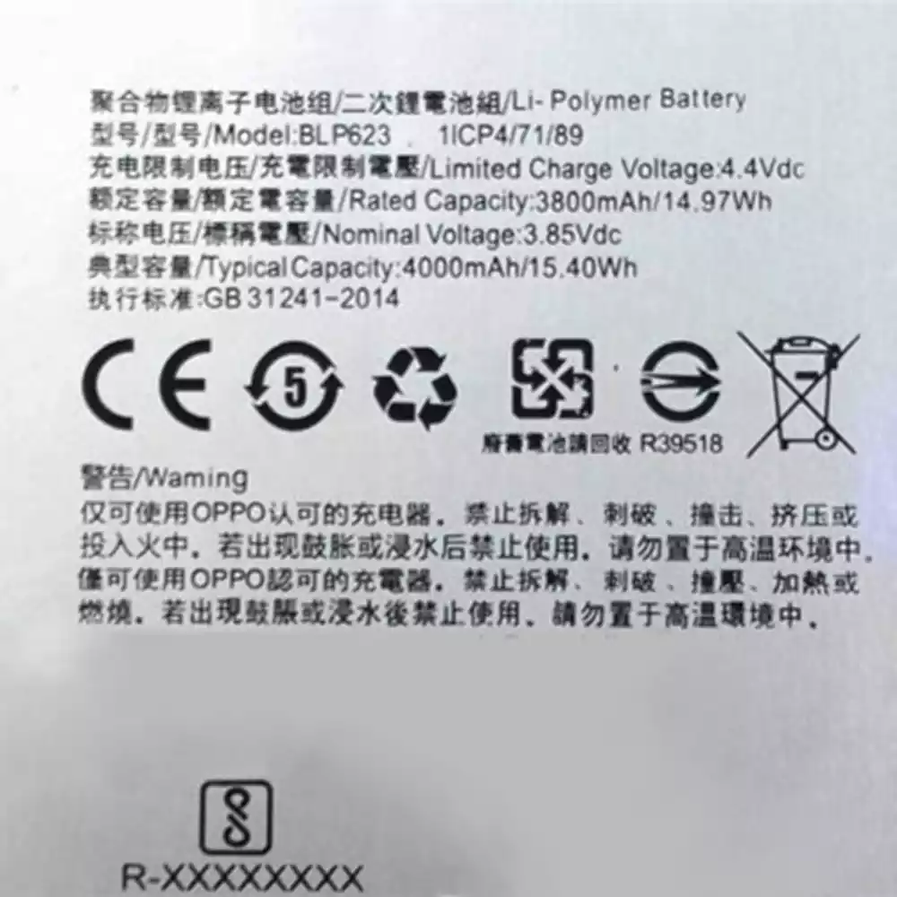 Bateria BLP623 do OPPO R9S Plus