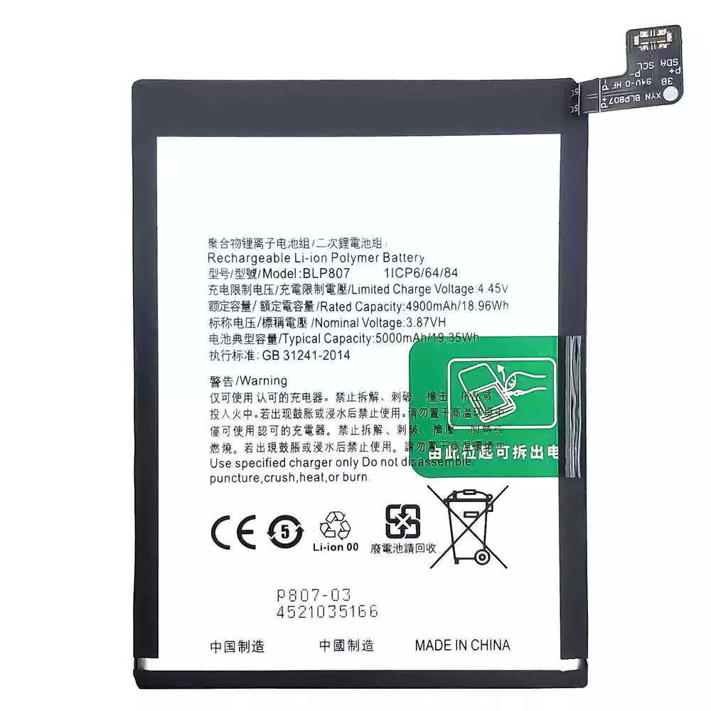 Bateria BLP807 do OPPO Realme 7/Realme Narzo 30 Pro 5G