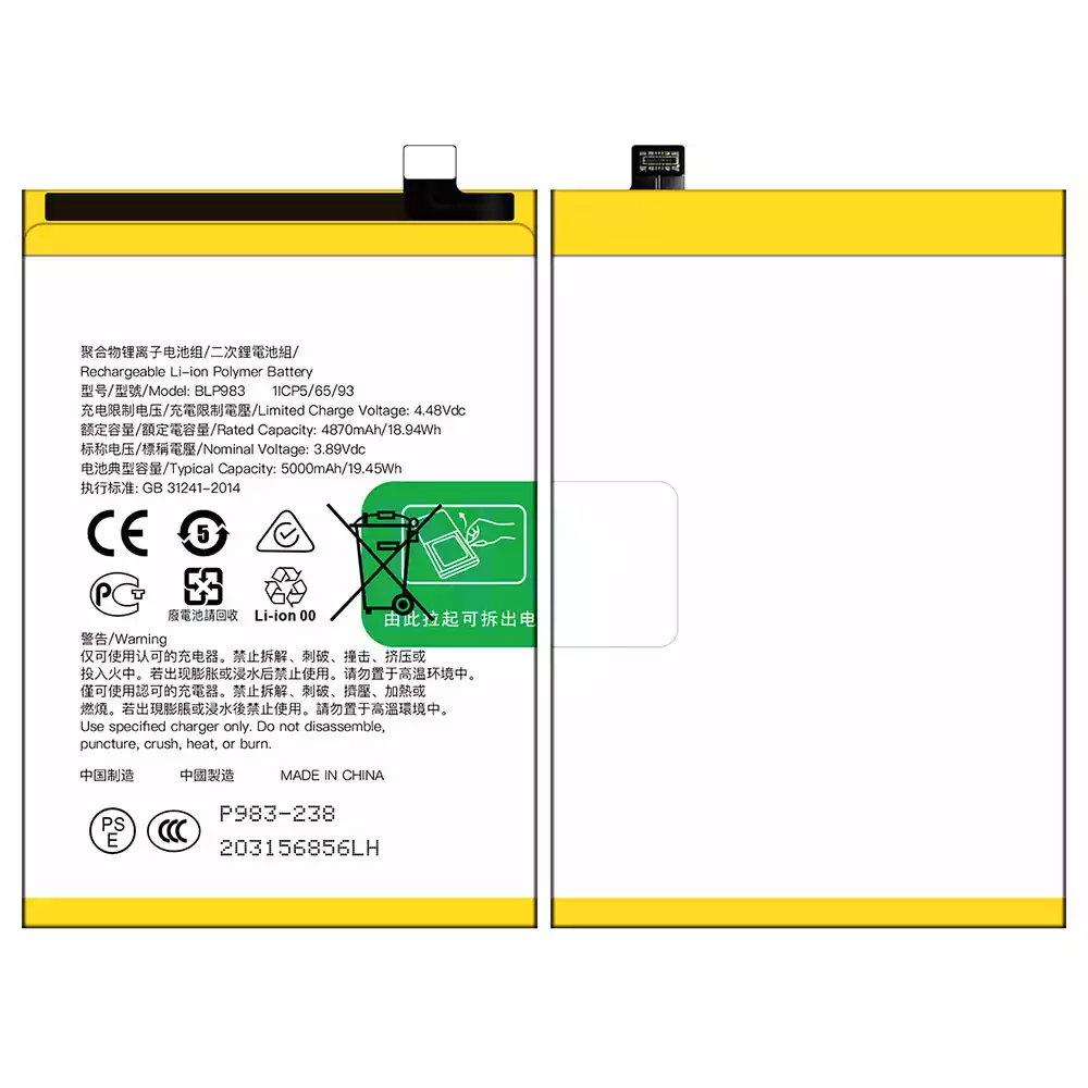 Bateria BLP983 do OPPO Reno 10 Pro/ Reno 10 Pro 5G
