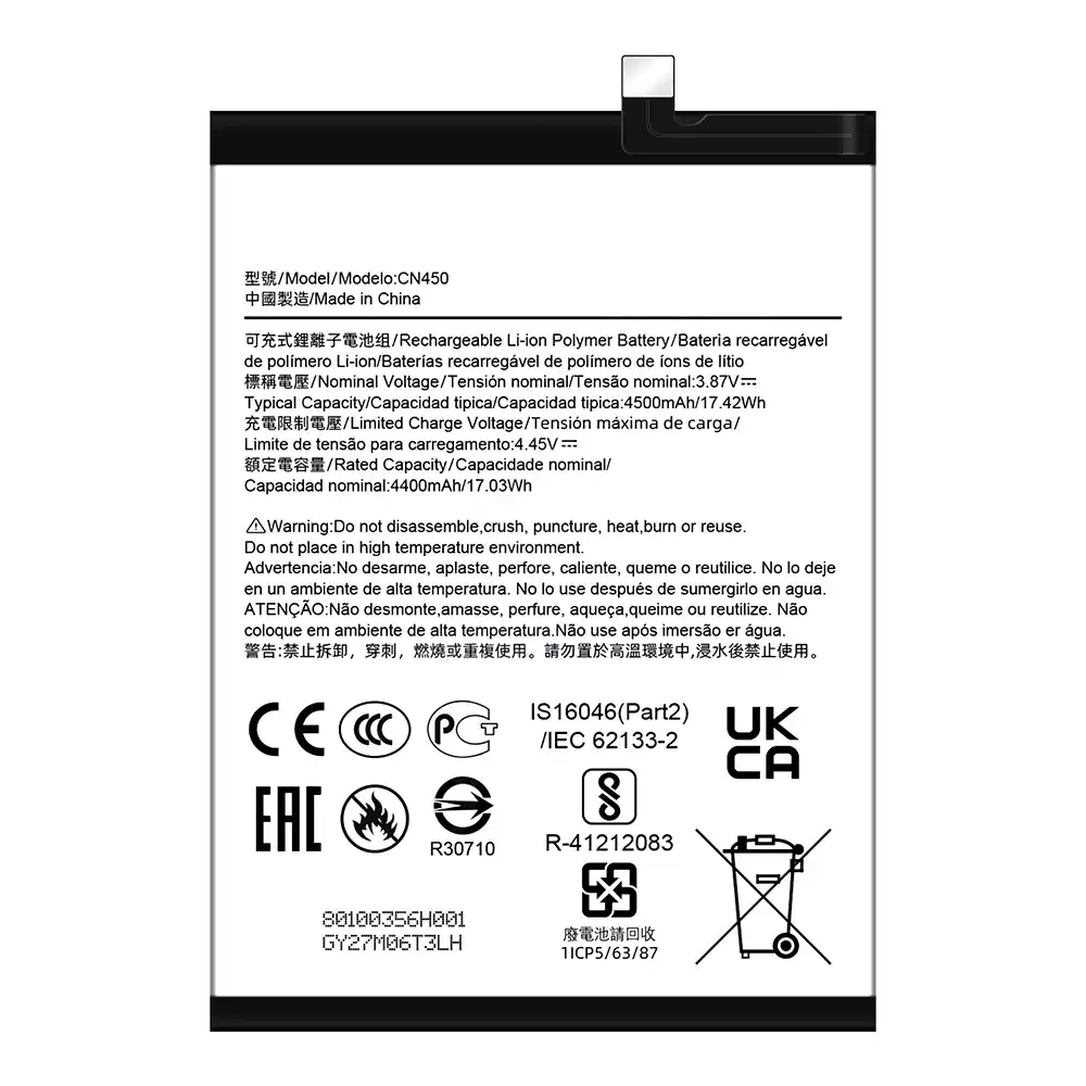 Bateria CN450 do Nokia NK G60/TA-1490/TA-1481/TA-1479/TA-1475