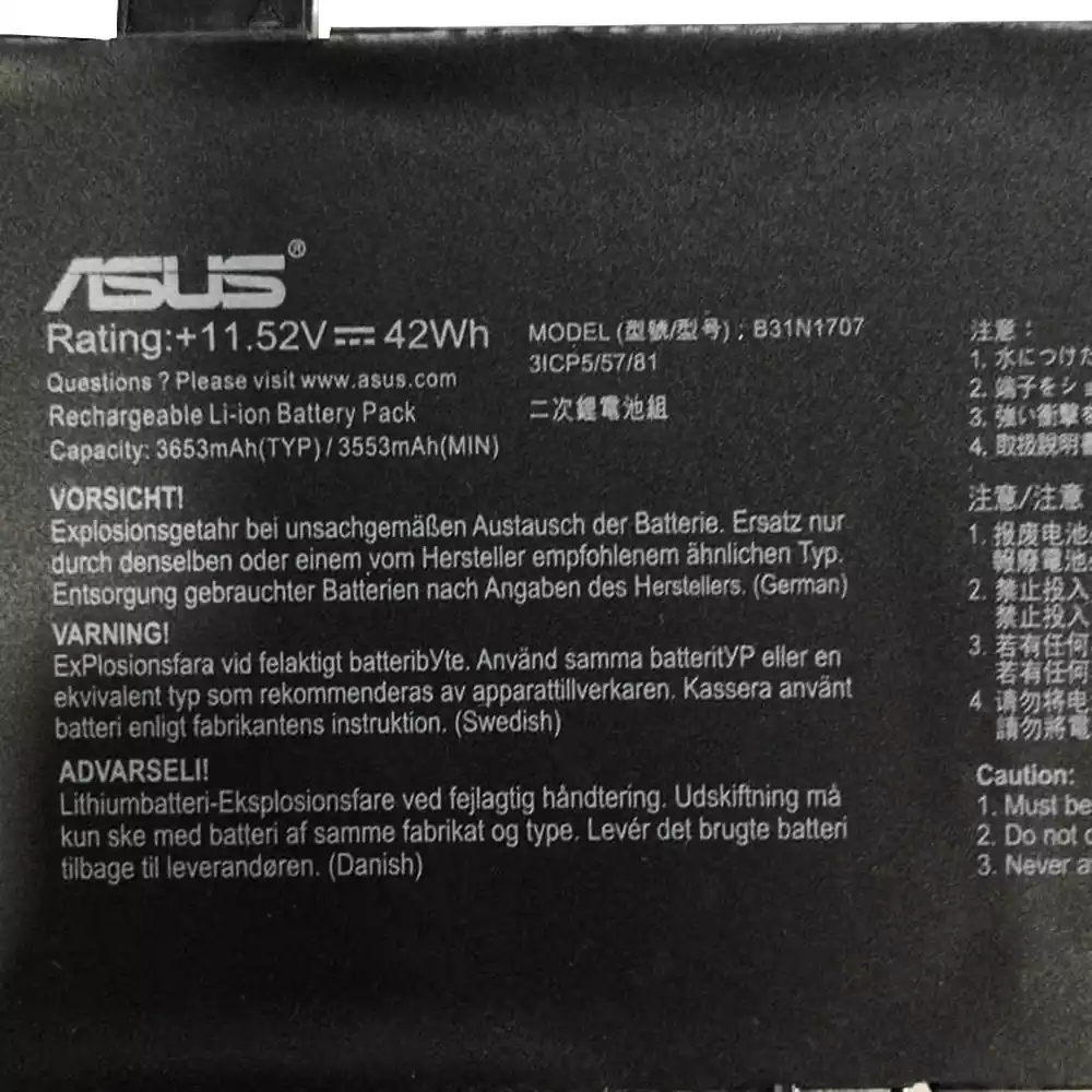 Bateria do laptopa ASUS B31N1707