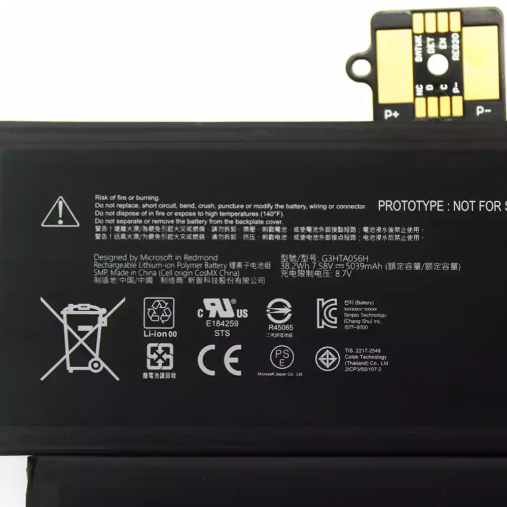 Bateria do laptopa G3HTA056H,Microsoft Surface Pro X 1876