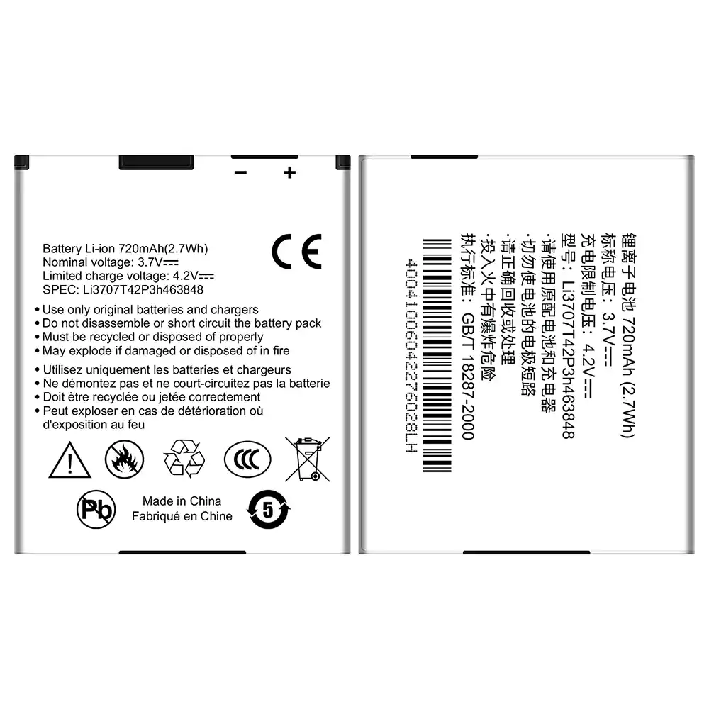 Bateria Li3707T42P3h463848 do ZTE Vodafone 228 227/F280/F285