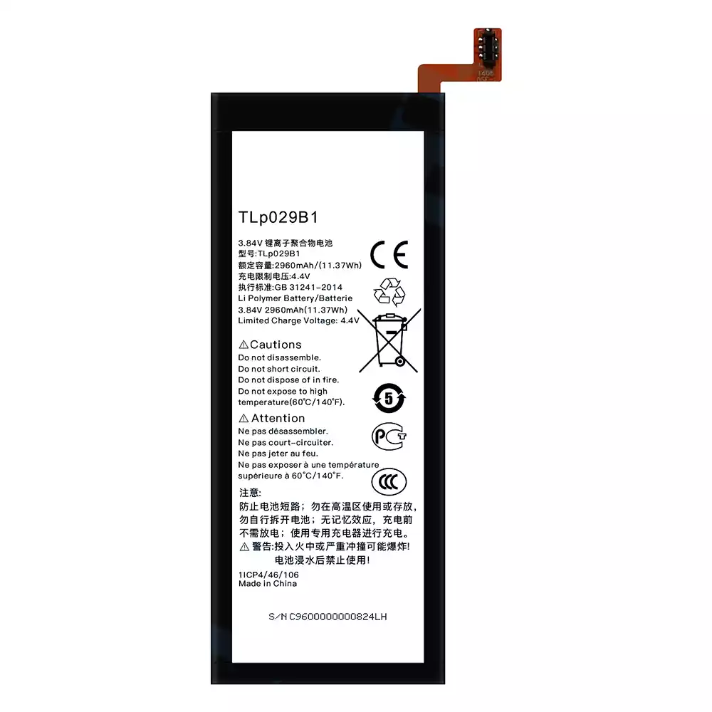 Bateria TLP029B1 do Alcatel Pop 4S/5095Y/5095L/5095B/5095I/5095K