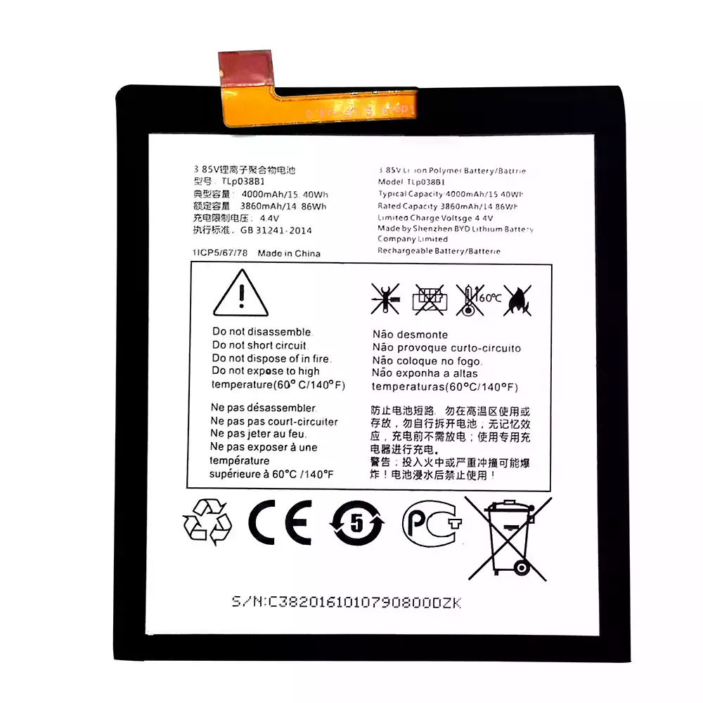 Bateria TLP038B1 do Alcatel A7-A7 LTE /OT-7071DX/OT-5090Y/OT-7071D